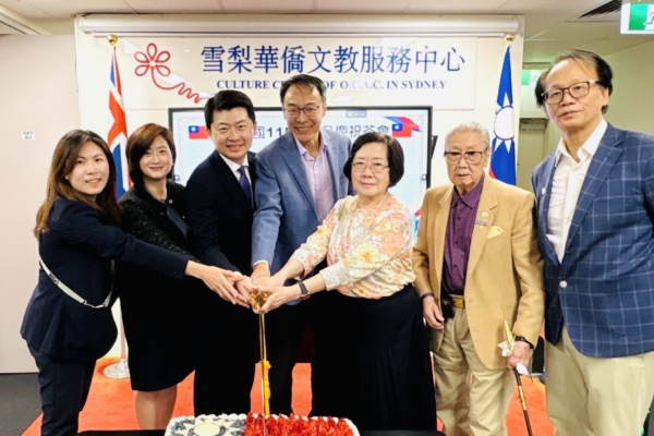 中华民国115年元旦庆祝茶会于2026年1月1日在雪梨华侨文教服务中心举行。图左起分别为雪梨华侨文教服务中心江佳慧主任(左一) 驻雪梨台北经济文化办事处吴正伟处长夫妇 (左二,左三) 熊强生侨务委员(左四) 陈雪凤侨务委员(左五)陈清诗 (左六) 澳洲台湾多元文化协会简明辉校长(右一)。(驻雪梨台北经济文化办事处提供)
