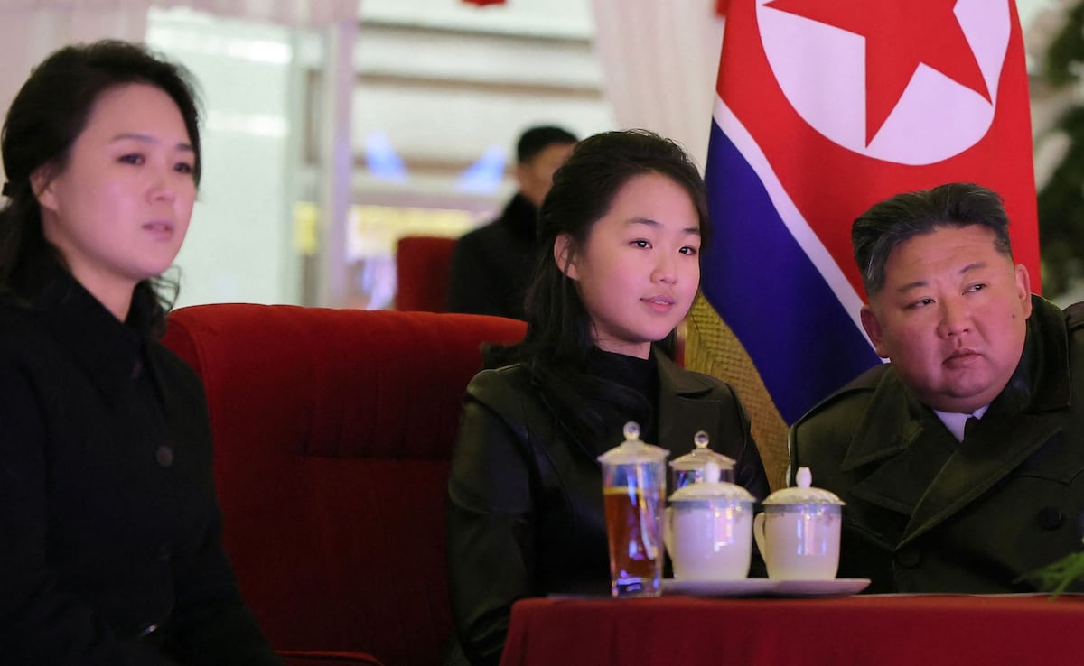 नॉर्थ कोरियाई नेता किम जोंग उन, उनकी बेटी किम जू ऐ (बीच में) और पत्नी री सोल जू