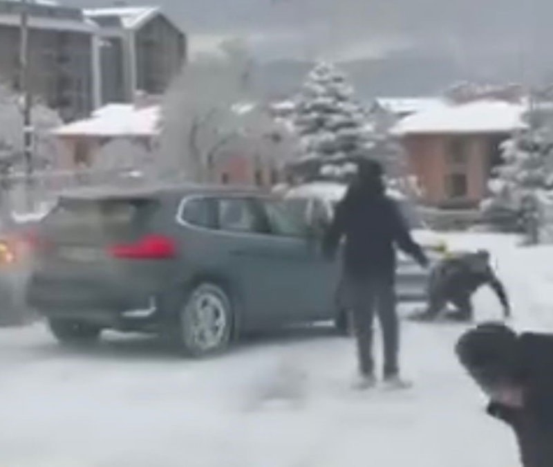 Bursa'da kar yağışı nedeniyle kontrolden çıkan cip, kayarak yolda bulunan vatandaşlara doğru ilerledi. Vatandaşlar kendilerini son anda kenara atarak kurtuldu.
