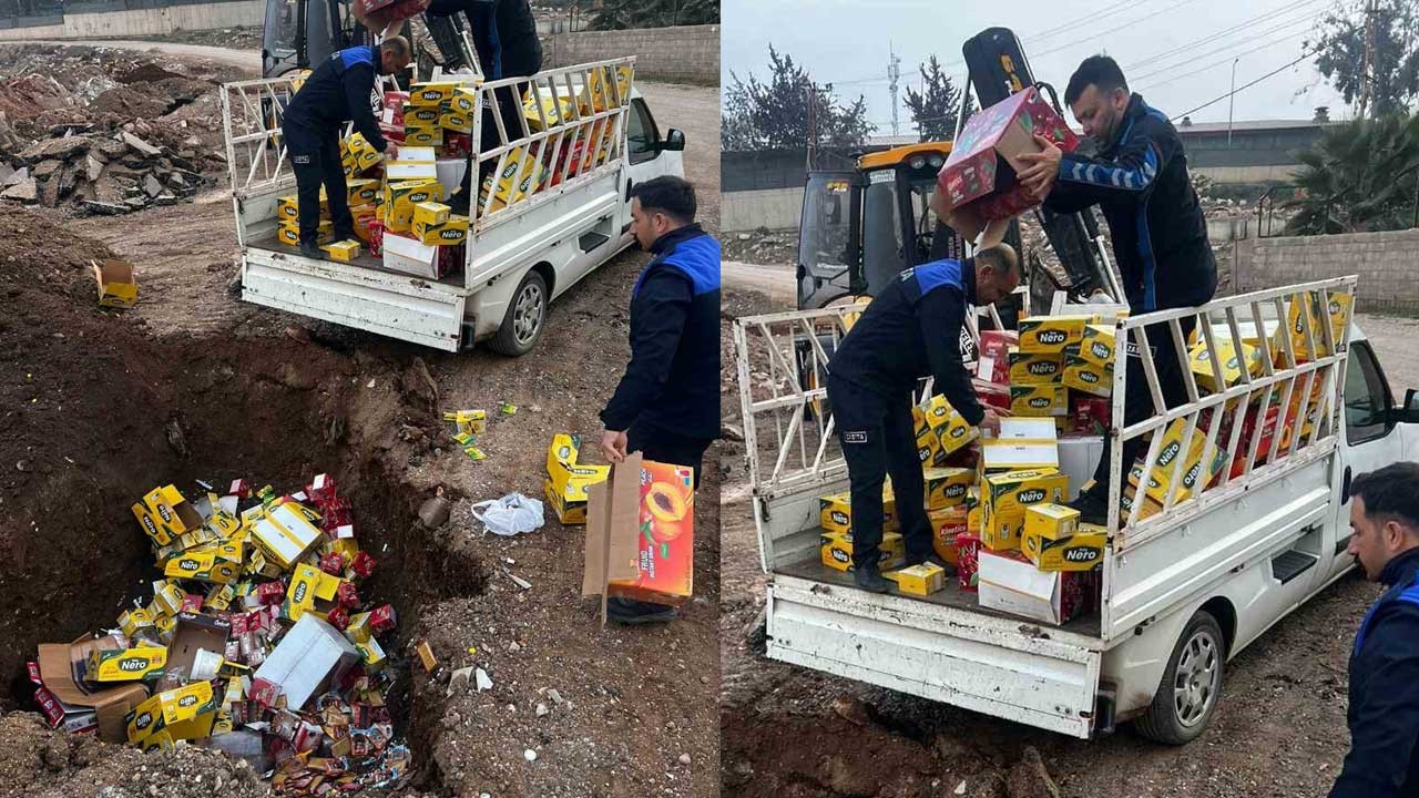 Hatay'da okul çevrelerinde bulunan işletmelere yönelik yapılan denetimlerde satılmayı bekleyen 465 kilogram ürün toprağa gömülerek imha edildi.