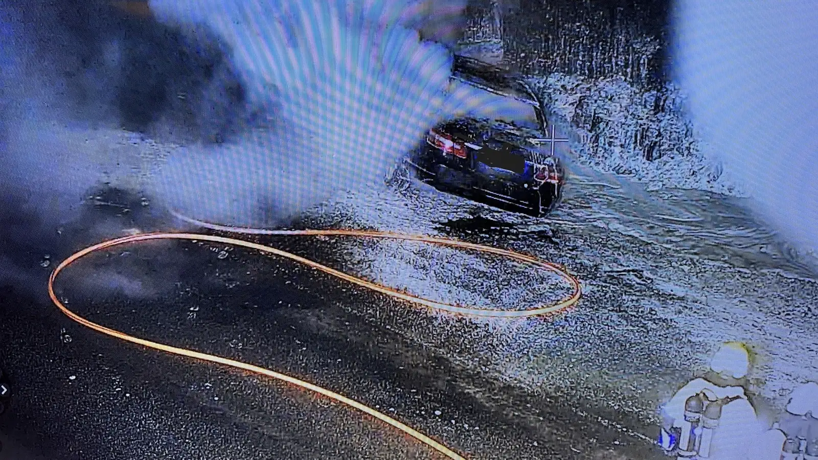 Slökkviliðsmenn að slökkva eldinn í bifreiðinni.Slökkvilið höfuðborgarsvæðisins Dælubílar slökkviliðsins á höfuðborgarsvæðinu voru sendir í níu verkefni í nótt sem meðal annars tengdust flugeldum og brennum sem varð að slökkva í. Þá fékk slökkviliðið eitt útkall vegna elds sem hafði kviknað í bifreið. Samkvæmt færslu á Facebook-síðu slökkviliðsins voru slökkviliðsmenn fljótir að bregðast við og slökkva eldinn.