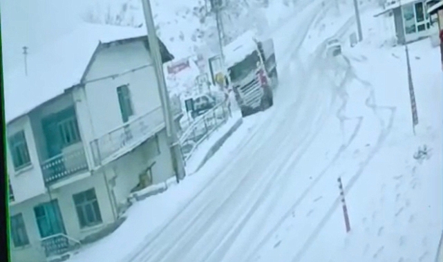 Tokat’ta kontrolden çıkan tırın bir eve çarpması sonucu maddi hasar meydana geldi. Kaza anı, güvenlik kamerası tarafından kaydedildi.
