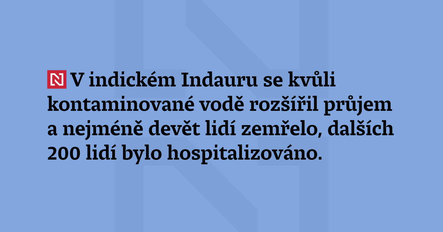 V indickém Indauru se kvůli kvůli kontaminované vodě rozšířil průjem a nejméně devět lidí zemřelo, dalších 200 lidí bylo hospitalizováno. První zprávy z vyšetřování potvrdily přítomnost bakterií, „které se obvykle nacházejí v kanalizaci“, ve vzorcích pitné vody, uvedly úřady. (HT)