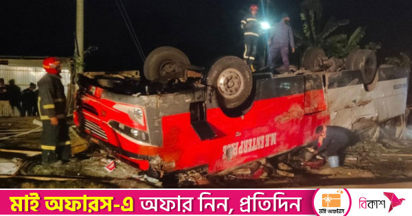 দিনাজপুরে বাস নিয়ন্ত্রণ হারিয়ে খাদে পড়ে শিশু নিহত, আহত ২০