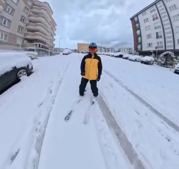 bursa’da işe kayakla gitti