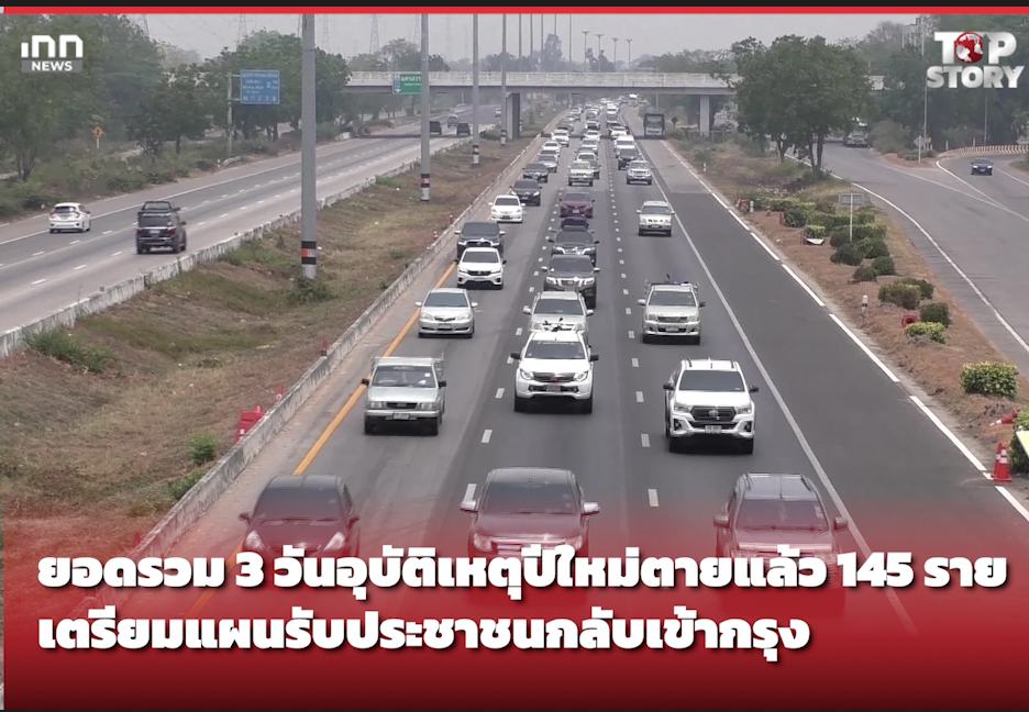 ยอดรวม 3 วันอุบัติเหตุปีใหม่ตายแล้ว 145 ราย เตรียมแผนรับประชาชนกลับกรุง
