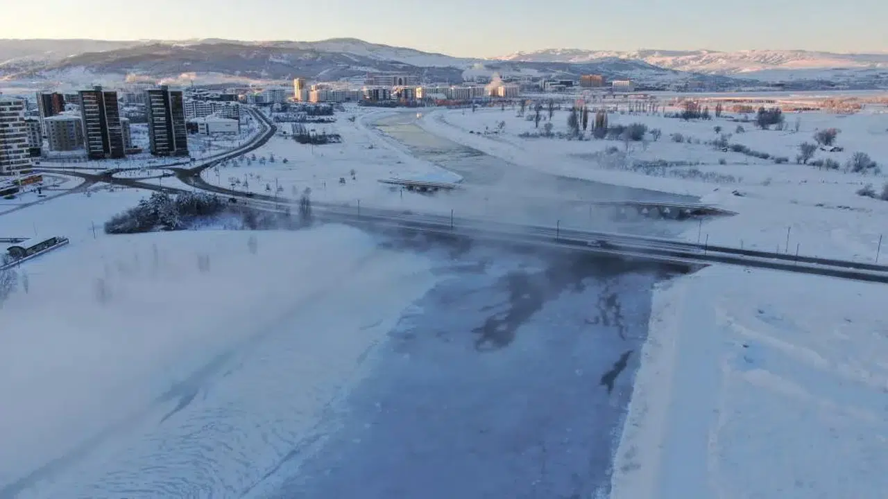 Sivas’ta kar yağışının ardından etkili olan Sibirya soğuklarıyla hava sıcaklığı eksi 19 dereceye düştü. Türkiye’nin en uzun nehri Kızılırmak kısmen donarken kentte kartpostallık görüntüler oluştu.