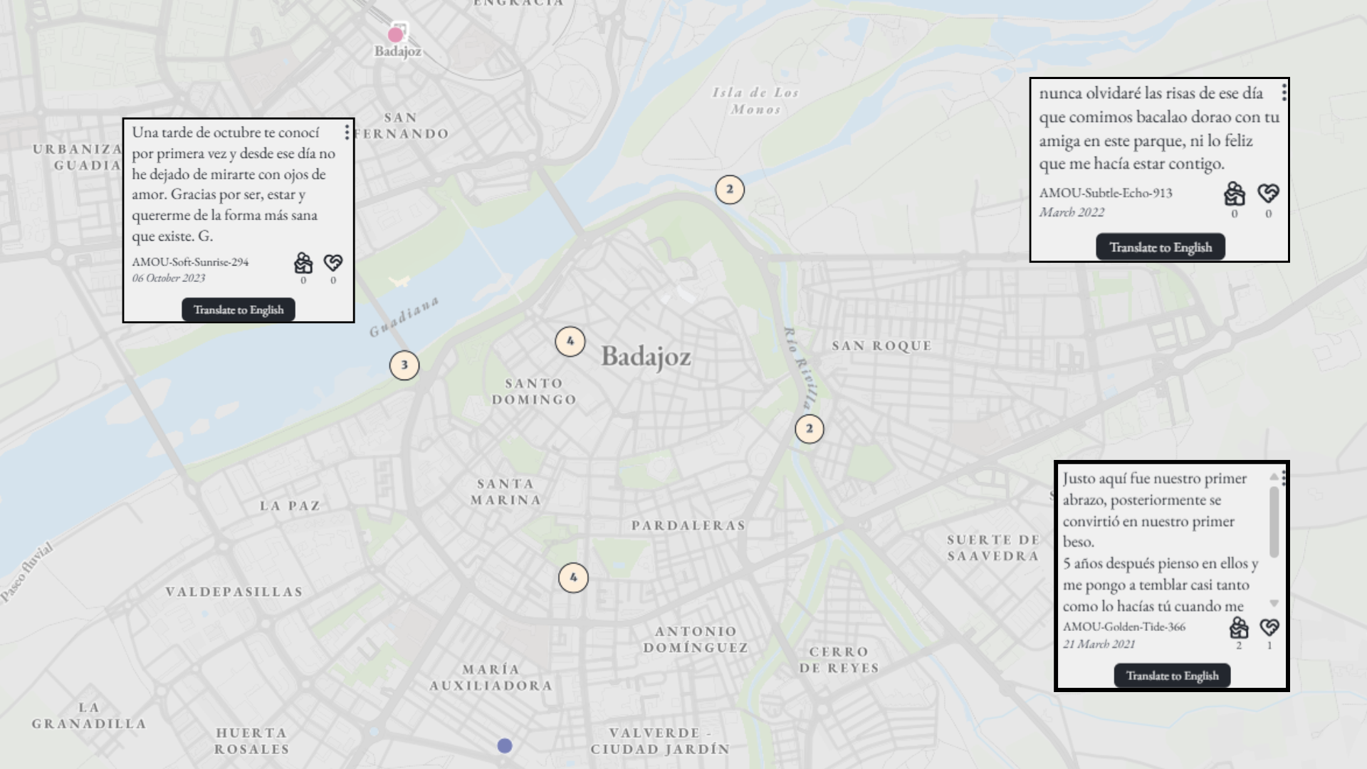 Badajoz se suma al fenómeno ‘A Map of Us’, el mapa global que guarda recuerdos anónimos en cada rincón