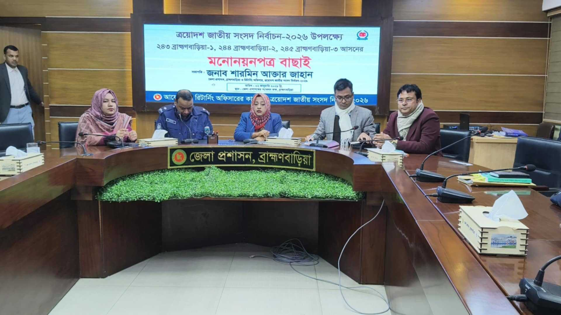 ব্রাহ্মণবাড়িয়ায় সংসদীয় আসনগুলোতে মনোনয়নপত্র যাচাই-বাছাইয়ের প্রথম দিনে হেভিওয়েট প্রার্থীদের অনেকের মনোনয়ন বৈধ ঘোষণা করা হয়েছে। জেলার ৬টি আসনের মধ্যে ৩টি আসনের ৩৬ জন প্রার্থীর দাখিলকৃত মনোনয়নপত্র পরীক্ষা করে ৩০ জনকে বৈধ ঘোষণা করেছেন জেলা রিটার্নিং কর্মকর্তা ও জেলা প্রশাসক শারমীন আক্তার জাহান। বাকি ৬ জন প্রার্থীর মনোনয়নপত্র কাগজপত্রে ত্রুটি ও ১ শতাংশ ভোটার তালিকায় গরমিল থাকার কারণে বাতিল করা হয়েছে।শুক্রবার (২ জানুয়ারি) বেলা ১১টা থেকে রিটার্নিং কর্মকর্তার কার্যালয়ের সম্মেলন কক্ষে এই যাচাই-বাছাই কার্যক্রম শুরু হয়।যাচাই-বাছাইয়ের প্রথম দিনে আলোচনার কেন্দ্রে থাকা বেশ কয়েকজন নেতার মনোনয়ন বৈধ হয়েছে। এর মধ্যে ব্রাহ্মণবাড়িয়া-২ আসনে বিএনপি থেকে বহিষ্কৃত স্বতন্ত্র প্রার্থী ব্যারিস্টার রুমিন ফারহানা এবং জমিয়তে উলামায়ে ইসলাম বাংলাদেশের সহ-সভাপতি মাওলানা জুনায়েদ আল হাবিব।এ সময় ব্রাহ্মণবাড়িয়া-২ আসনে বিএনপি থেকে বহিষ্কৃত স্বতন্ত্র প্রার্থী ব্যারিস্টার রুমিন ফারহানা, একই আসনে জমিয়তে উলামায়ে ইসলাম বাংলাদেশের সহ-সভাপতি মাওলানা জুনায়েদ আল হাবিব ও ব্রাহ্মণবাড়িয়া-৩ আসনে বিএনপির কেন্দ্রীয় নির্বাহী কমিটির অর্থনীতি বিষয়ক সম্পাদক ইঞ্জিনিয়ার খালেদ হোসেন মাহবুব শ্যামল এর মনোনয়নপত্র বৈধ ঘোষণা করা হয়েছে।ঘোষিত মনোনয়নের মধ্যে ব্রাহ্মণবাড়িয়া-১ নাসিরনগর আসনে মনোনয়ন দাখিলকৃত মোট ১২ জন প্রার্থীর মধ্যে ১০টি মনোনয়ন বৈধ এবং দুটি বাতিল করা হয়েছে। বাতিলকৃত স্বতন্ত্র প্রার্থীরা হলেন, হাবিবুর রহমান ও সৈয়দ নজরুল ইসলাম।ব্রাহ্মণবাড়িয়া-২(সরাইল-আশুগঞ্জ ও বিজয়নগরের আংশিক) আসনে ১১ জন প্রার্থী মনোনয়নপত্র দাখিল করেছেন। তাদের সবার মনোনয়নপত্র বৈধ ঘোষণা করা হয়েছে।আরও পড়ুন: গাইবান্ধায় জামায়াতসহ ৮ প্রার্থীর মনোনয়নপত্র বাতিলব্রাহ্মণবাড়িয়া-৩ (সদর-বিজয়নগর আংশিক) আসনে মোট ১৩ জন প্রার্থীর মধ্যে ৯ জন প্রার্থীর মনোনয়ন বৈধ ঘোষণা করা হয়েছে। বাকি ৪ জনের মনোনয়নপত্র ১ শতাংশ ভোটার তালিকায় গরমিল থাকার কারণে বাতিল ঘোষণা করা হয়েছে। বাতিল হওয়া স্বতন্ত্র প্রার্থীরা হলেন- আরিফুর রহমান, নূরে আলম সিদ্দিকী ওমর ইউসুফ খান ও কাজী জাহাঙ্গীর।ব্রাহ্মণবাড়িয়া-৩ আসনে বিএনপির কেন্দ্রীয় নির্বাহী কমিটির অর্থনীতি বিষয়ক সম্পাদক ইঞ্জিনিয়ার খালেদ হোসেন মাহবুব শ্যামল।মনোনয়নপত্র যাচাই-বাছাই শেষে জেলা রিটার্নিং কর্মকর্তা শারমীন আক্তার জাহান উপস্থিত প্রার্থী ও তাদের প্রতিনিধিদের উদ্দেশে সংক্ষিপ্ত বক্তব্য রাখেন। তিনি সকলকে নির্বাচনি আচরণবিধি যথাযথভাবে মেনে চলার আহ্বান জানান। তিনি আরও জানান, যাদের মনোনয়ন বাতি