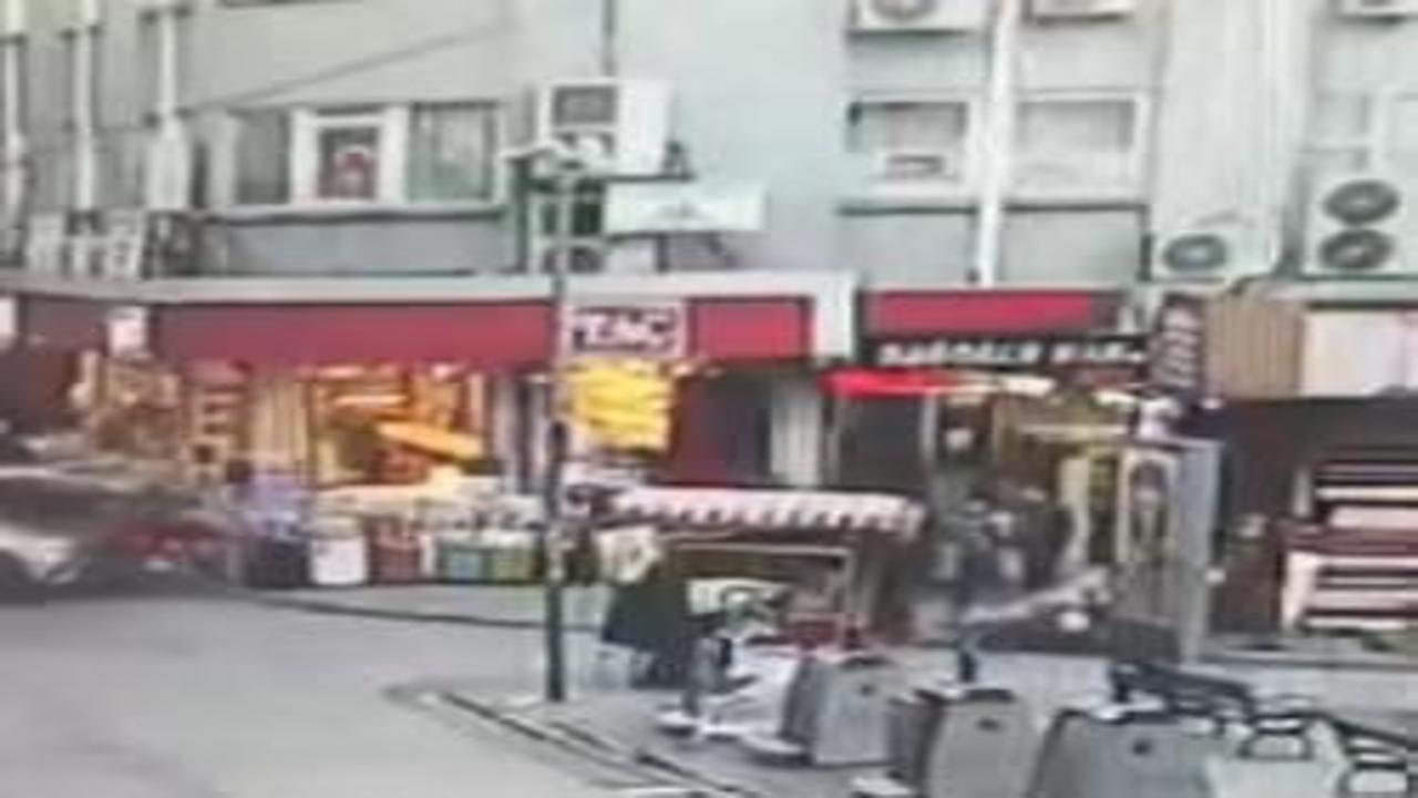 Eminönü'nde can pazarı yaşandı! Araba önce motora sonra dükkana çarptı