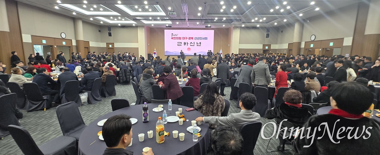 국민의힘 대구·경북 지역 국회의원들과 주요 당직자들이 신년 인사회를 열고, 오는 6월 치러질 지방선거에서의 압승을 다짐했다. 2일 오후 대구 엑스코(EXCO)에서 열린 대구경북 신년 인사회에는 송언석 원내대표를 비롯해 정희용 사무총장, 우재준 청년최고위원, 김재원 최고위원, 이인선 대구시당위원장, 구자근 경북도당위원장 등이 대거 참석했다. 이철우 경북도지사와 박성만 경북도의회 의장, 이만규 대구시의회 의장을 비롯해 대구시의원·경북도의원, 대구·경북 기초단체장들도 대부분 자리를 함께했다. 이 밖에도 오는 6월 지방선거 출마 예정자들이 적극적으로 얼굴을 알리는 등 당원과 당직자 약 1000명이 참석해 행사장은 성황을 이뤘다. 전체 내용보기