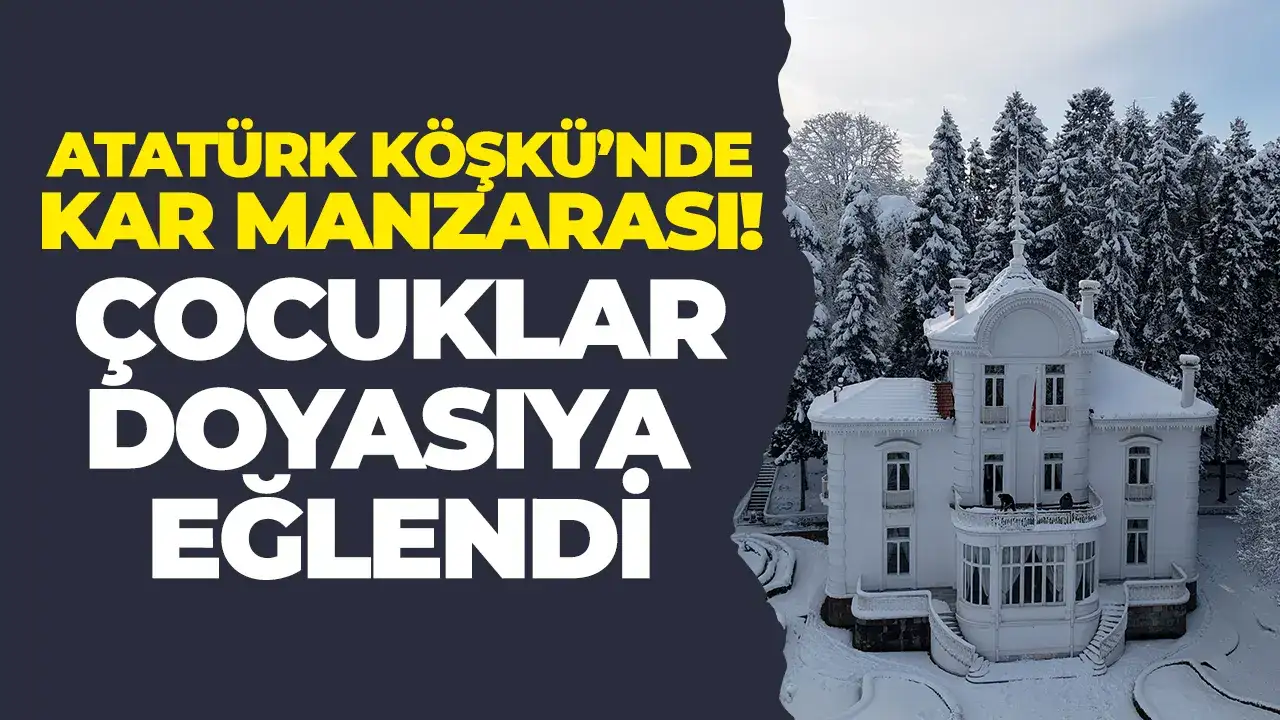 Atatürk Köşkü’nde kar manzarası: Çocuklar doyasıya eğlendi