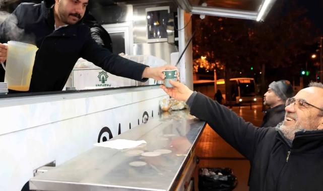 Konya'da Karatay Belediyesi, kış şartlarının etkili olduğu günlerde mobil ikram araçları aracılığıyla vatandaşlara sıcak çorba ikramında bulunuyor.