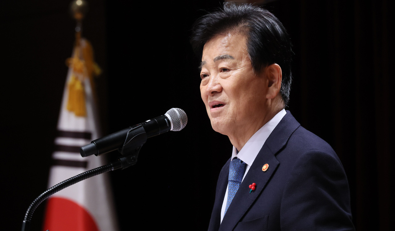 ▲ 정동영 통일부 장관이 2일 서울 종로구 정부서울청사 별관에서 열린 2026년 통일부 시무식에서 신년사를 하고 있다.정동영 통일부 …
