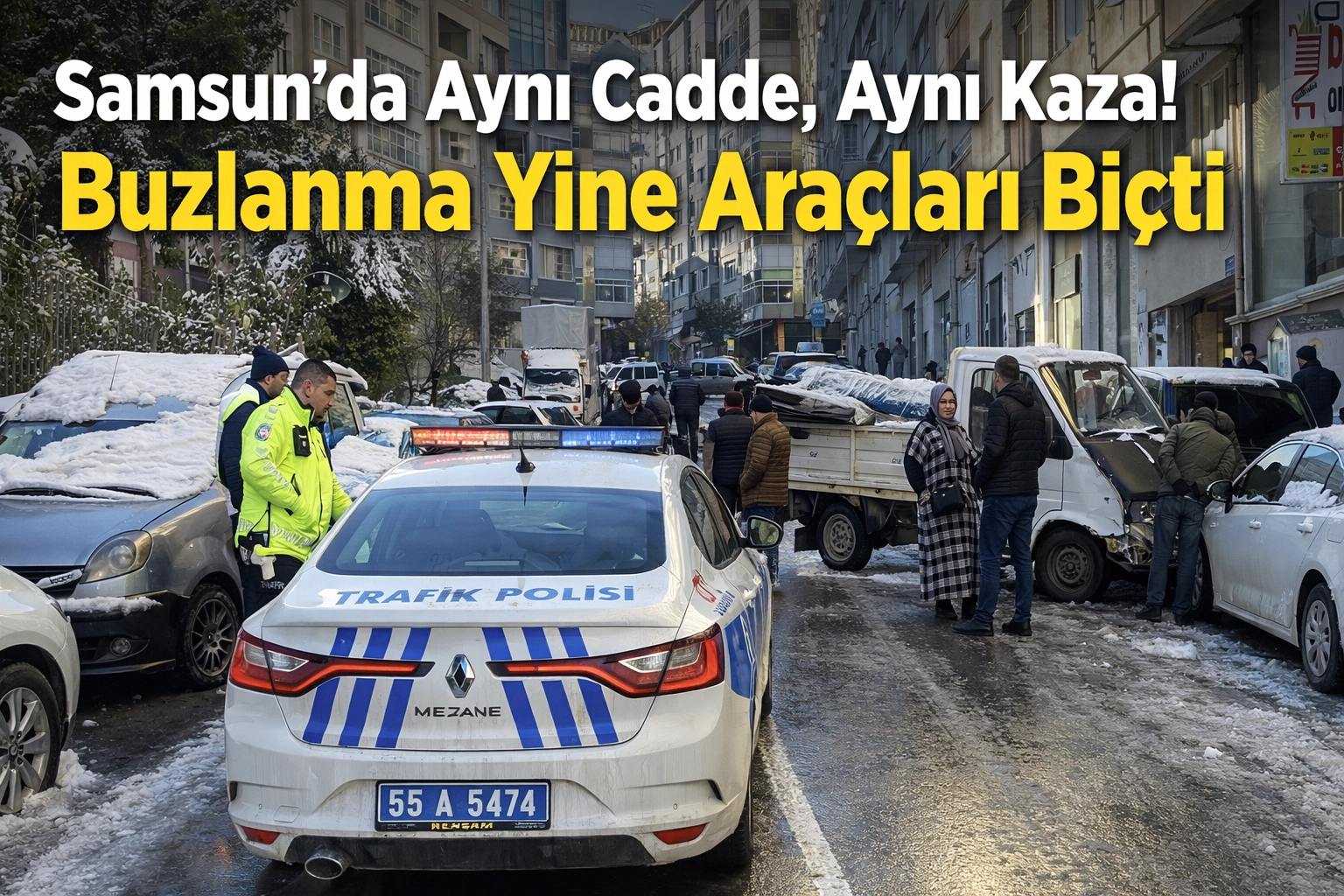İlkadım’daki Gebi Caddesi’nde buzlanma nedeniyle zincirleme hasarlı kazalar yaşandı. Aracı ikinci kez zarar gören Bünyamin Adıyaman, “Her sene aynı şeyi yaşıyoruz, önlem yok” diyerek tepki gösterdi.