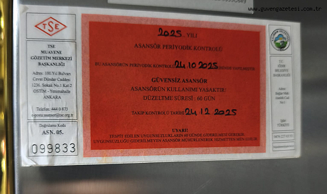 Iğdır Belediyesi Binasındaki Asansör Denetimden Geçemedi, Kırmızı Etiket Uygulandı