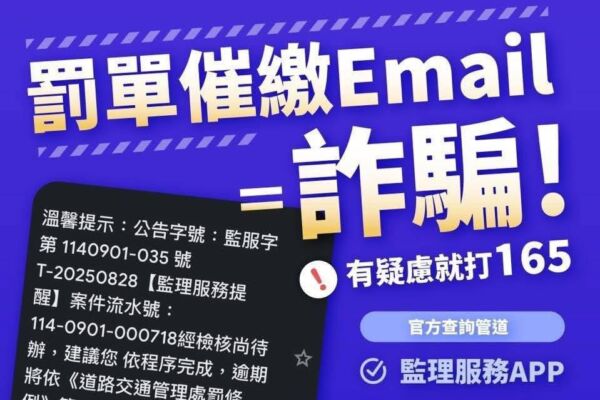 罚单催缴Email是诈骗。(嘉义市监理站提供)
