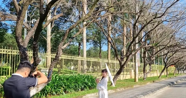 Dưới ánh nắng nhẹ ngày đầu năm mới, hàng sưa ở phường Bàn Thạch, Đà Nẵng vào mùa thay lá đẹp lạ lùng, nhiều người mê mẩn check-in.