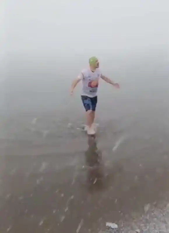 kar altında denize girip yüzdü attı