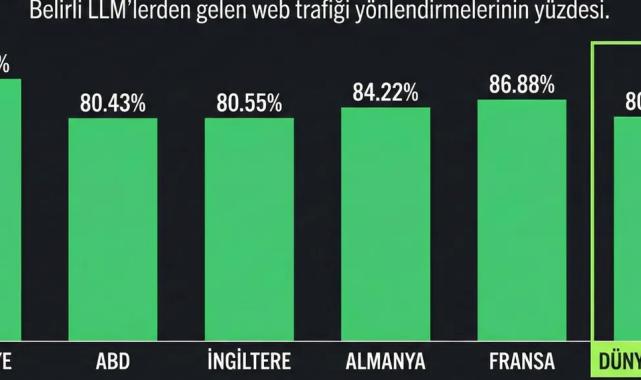 We Are Social ve Meltwater tarafından yayınlanan "Digital 2026 Global Overview" raporuna göre Türkiye, yapay zeka tabanlı web trafiği yönlendirmelerinde %94,49'luk oranla ChatGPT'nin en baskın olduğu ülke konumuna yerleşti.