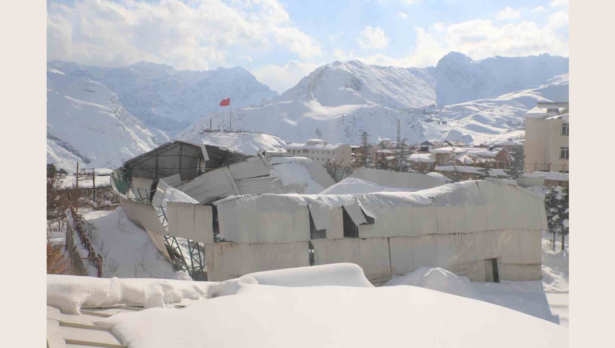 Hakkari Atatürk Anadolu Lisesi bahçesinde bulunan halı sahanın tavanı, etkisini sürdüren karın ağırlığına dayanamayarak çöktü.