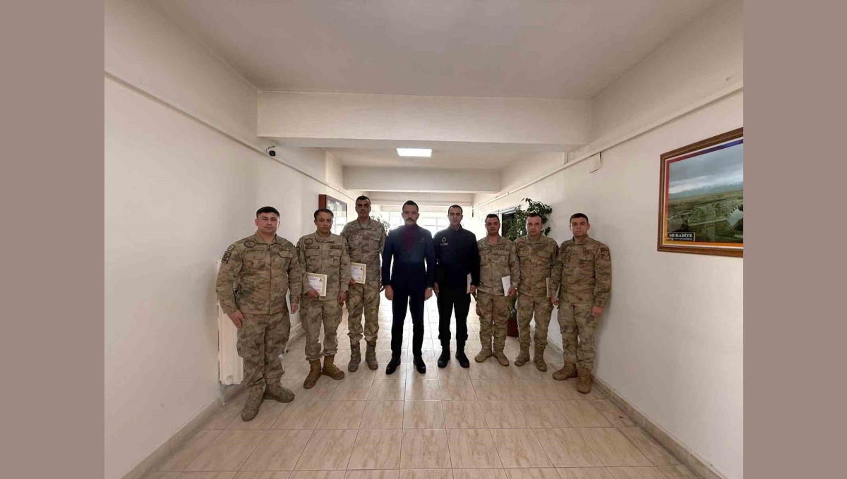 Van'ın Muradiye Kaymakamı Furkan Taha Türkmenoğlu tarafından jandarma personeline başarı belgesi verildi.