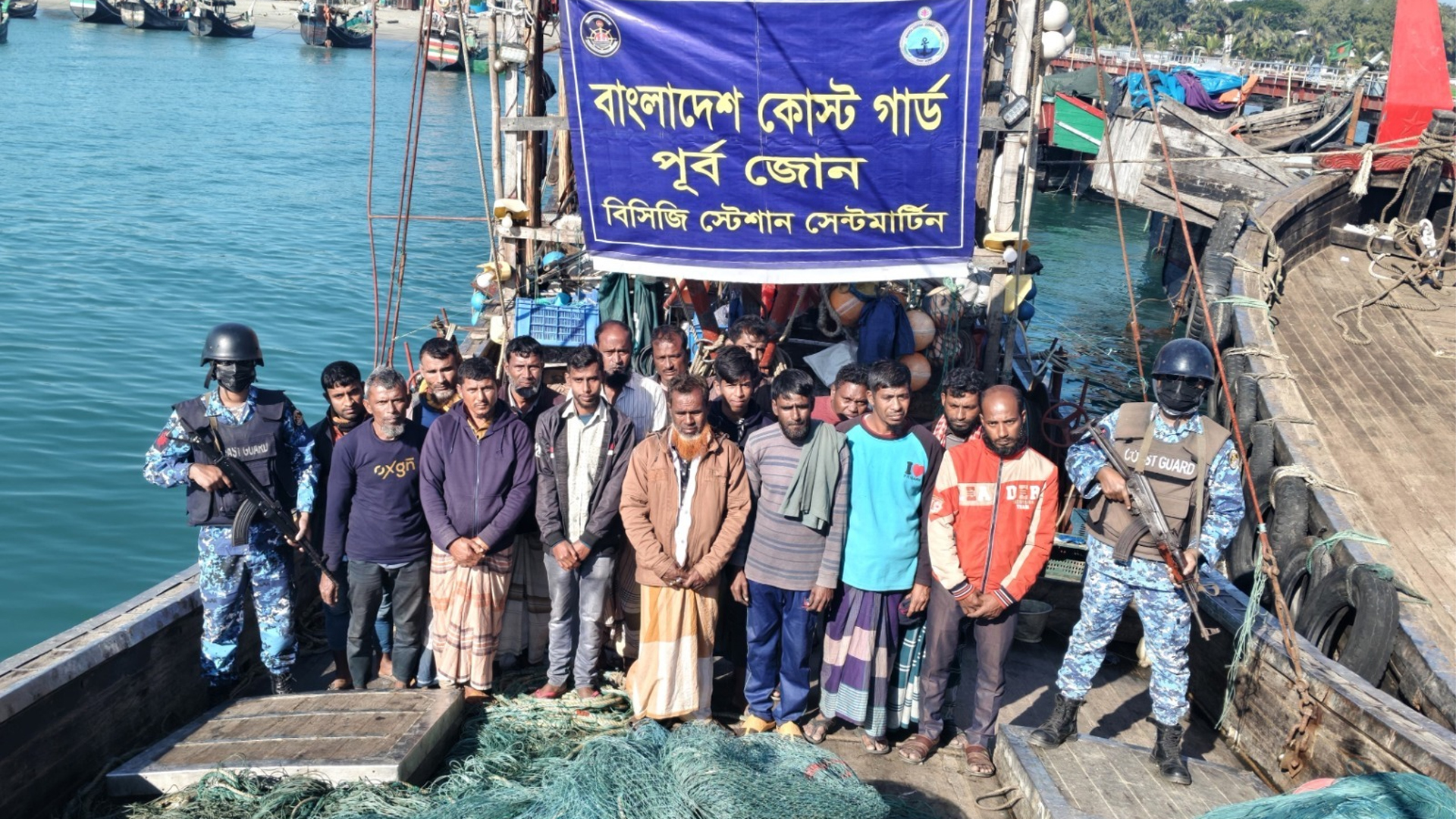 বঙ্গোপসাগরের কক্সবাজারের ইনানী থেকে অবৈধ আর্টিসনাল ট্রলিং বোট, জাল ও বিপুল পরিমাণ সামুদ্রিক মাছসহ ১৬ জন জেলেকে আটক করেছে কোস্টগার্ড।শুক্রবার (২ জানুয়ারি) রাতে কোস্টগার্ড মিডিয়া কর্মকর্তা লেফটেন্যান্ট কমান্ডার সিয়াম-উল-হক এ তথ্য জানান।তিনি বলেন, ‘অপারেশন সমুদ্র প্রহরায় নিয়োজিত কোস্টগার্ড জাহাজ কামরুজ্জামান বৃহস্পতিবার বিকেল ৩টায় কক্সবাজারের ইনানী সমুদ্রসৈকত হতে প্রায় ১০ নটিক্যাল মাইল দূরত্বে গভীর সমুদ্র এলাকায় একটি বিশেষ অভিযান পরিচালনা করে। অভিযানে ১টি অবৈধ আর্টিসনাল ট্রলিং বোট জব্দ করা হয়। পরবর্তীতে জব্দ বোটে তল্লাশি চালিয়ে প্রায় ২৫ লাখ টাকা মূল্যের ৪টি ট্রলিং জাল ও ১ হাজার ৭৫০ কেজি সামুদ্রিক মাছসহ ১৬ জন জেলেকে আটক করা হয়।’আরও পড়ুন: সুন্দরবনে মাছ ধরার অভিযোগে ৯ জেলে আটকসিয়াম-উল-হক বলেন, ‘জব্দ আর্টিসানাল ট্রলিং বোট, জাল, সামুদ্রিক মাছ ও আটক জেলেদের পরবর্তী আইনি ব্যবস্থাগ্রহণ প্রক্রিয়াধীন রয়েছে।’তিনি আরও বলেন, ‘মৎস্য সম্পদ রক্ষায় বাংলাদেশ কোস্টগার্ড ভবিষ্যতেও এ ধরনের অভিযান অব্যাহত রাখবে।’