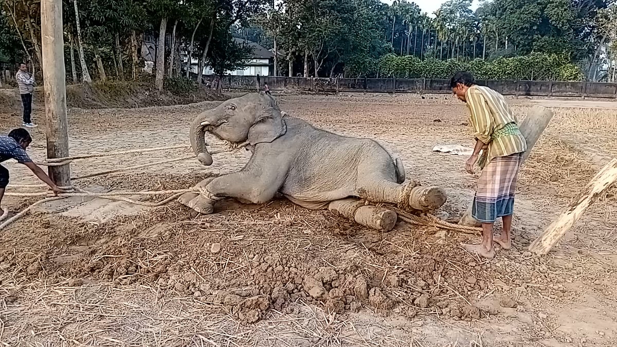 কুলাউড়ায় সনাতন পদ্ধতিতে হস্তীশাবকের ‘হাদানি’ প্রশিক্ষণ