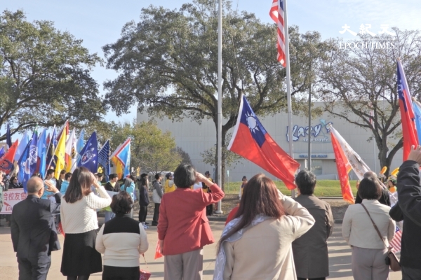 齐唱中华民国国旗歌,并向冉冉升空的国旗敬礼。(陆希/大纪元)