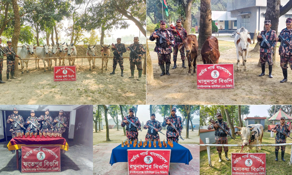 চাঁপাইনবাবগঞ্জ সীমান্তে ১১ ভারতীয় গরু উদ্ধার, মোটরসাইকেল জব্দ