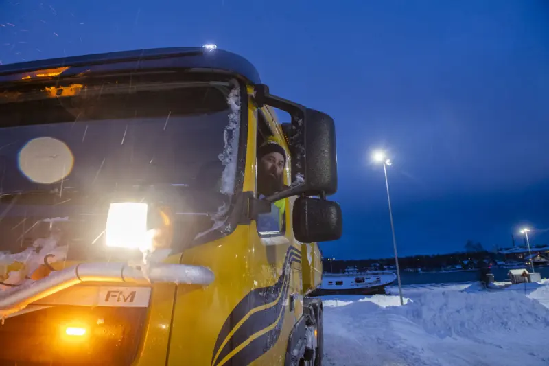 Johannes Andersson körde mellan Mariehamn och Eckerö samt på lokala vägar i Hammarland hela natten mellan torsdag och fredag.– Det blev väl tre gånger Mariehamn-Eckerö i natt, eller fyra egentligen, för jag tog ett extra varv också och plogade fram busshållplatserna, säger han.