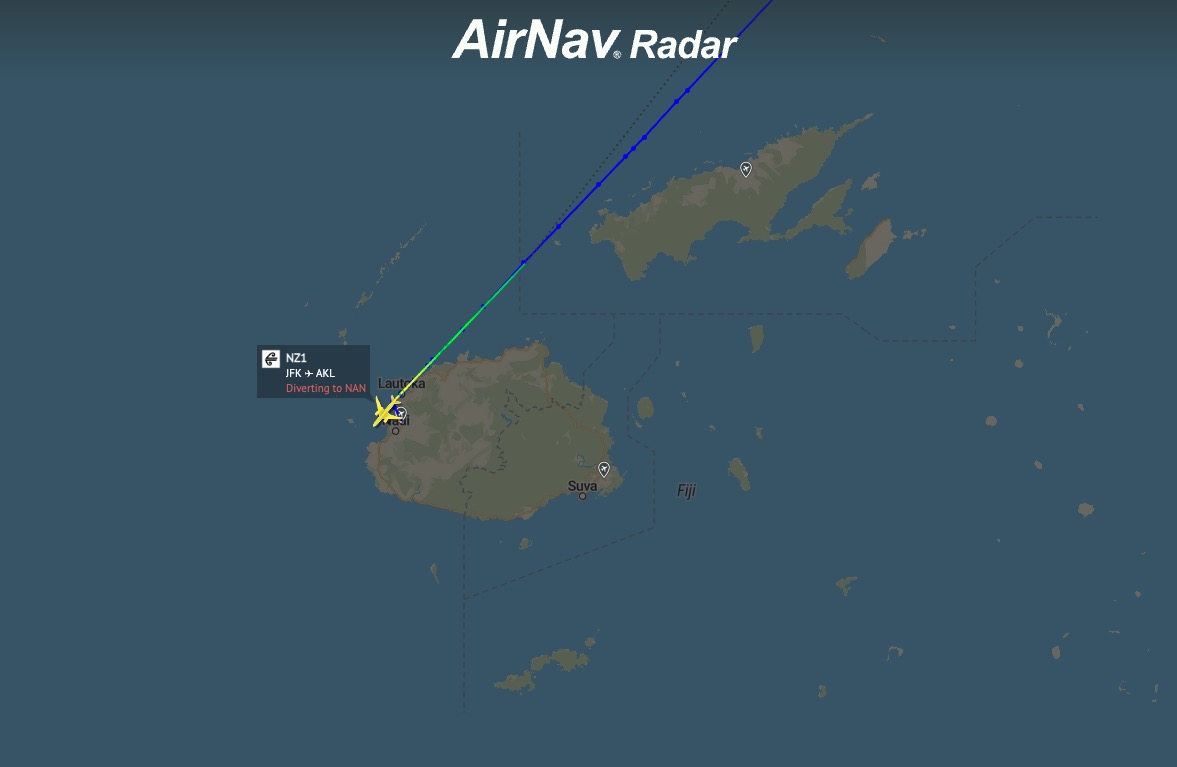 Air New Zealand’s premier ultra-long-haul service made an unexpected arrival in the Pacific Islands this morning after the flight to Auckland was forced to divert to Nadi, Fiji. NADI, FIJI – Air New Zealand’s premier ultra-long-haul service, Flight NZ1, made an unexpected arrival in the Pacific Islands this morning after the flight from New York […] The post Air New Zealand flight NZ1 from New York JFK, just diverted to Fiji Islands in Pacific appeared first on AIRLIVE .