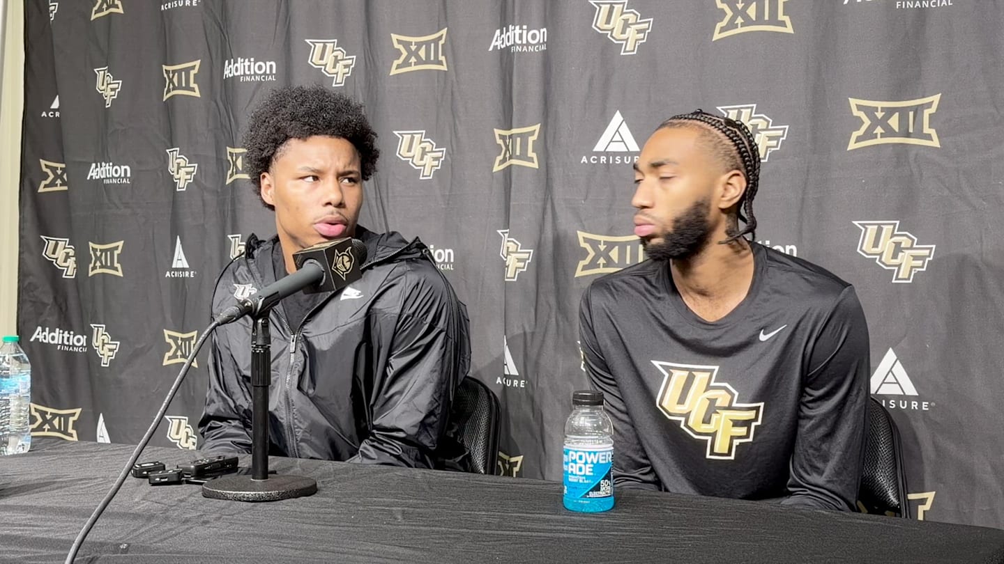 UCF forwards Jamichael Stillwell and Jordan Burks speak with the media ahead of the Knights' Big 12 opener against Kansas.