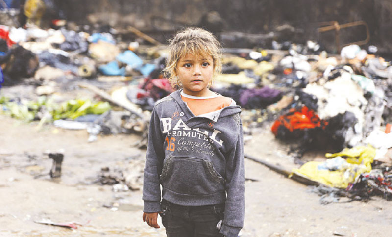 বিধ্বস্ত তাঁবুর পাশে হতবিহ্বল এক শিশু