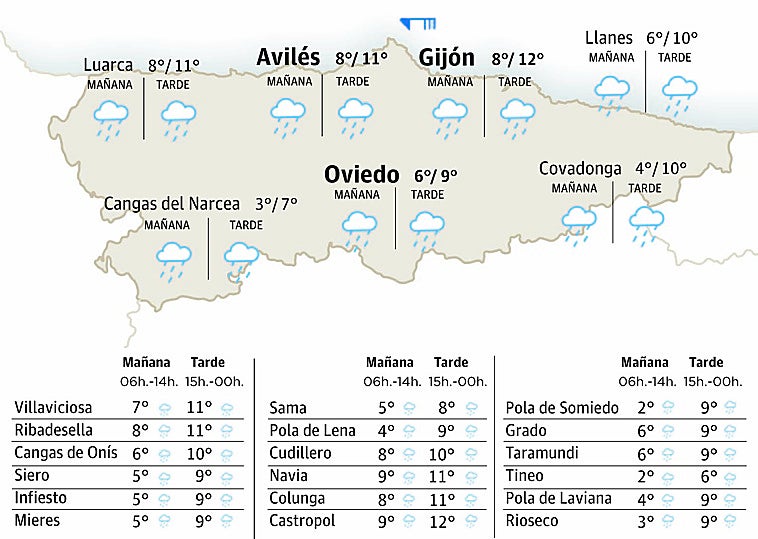 Esperamos cielos nubosos con precipitaciones más frecuentes en la mitad norte pero que también acabarán afectando a otros puntos del Principado