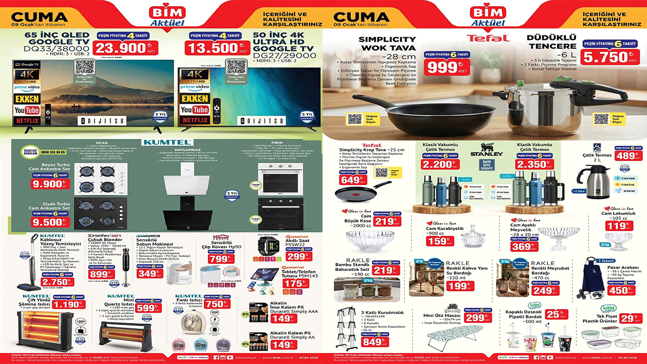 BİM market ocak ayı indirimlerine devam ediyor. BİM market 09 Ocak 2026 Cuma aktüel ürünler fiyat listesini sizler için hazırladık. BİM markette 09 Ocak‘ta onlarca indirimli ürün raflarda yerlerini alıyor. BİM'de Cuma günü hangi ürünlerde indirim var? Cuma günü BİM markete hangi ürünler geliyor? İşte BİM 09 Ocak 2026 Cuma indirimleri...