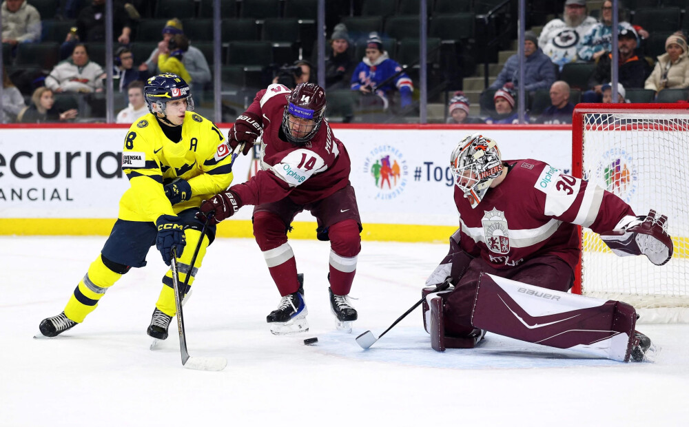 Latvijas U-20 hokejisti ielaiž 10. sekundē, spēj atspēlēties, tomēr pārliecinoši piekāpjas zviedriem