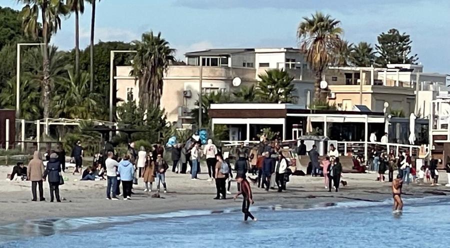 Sul Poetto risplende il sole: primi bagni fuori stagione, folla tra spiaggia e chioschi