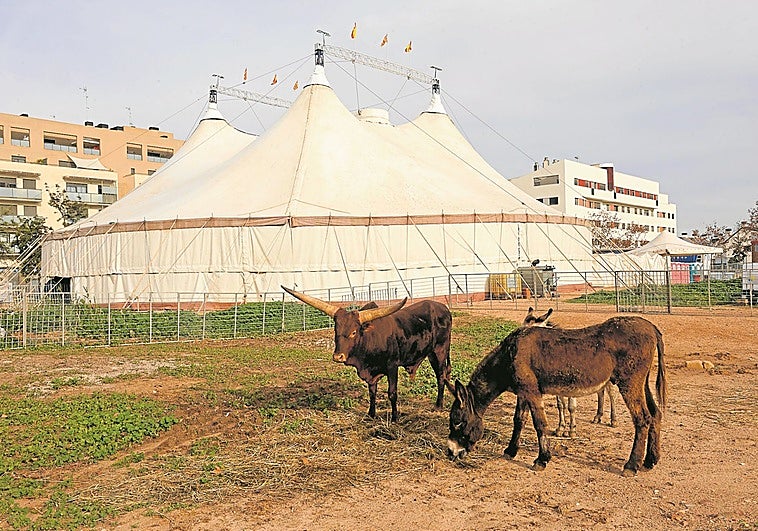 Un toro Watusi, caballos, dromedarios, un avestruz, emúes... Variopintas especies conviven en el establo del polémico Circ de Nadal, cuyo parque despierta gran curiosidad