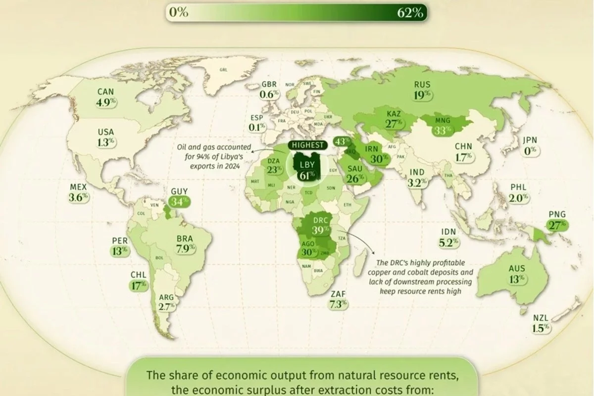 Якая краіна найбольш залежыць ад прыродных рэсурсаў?