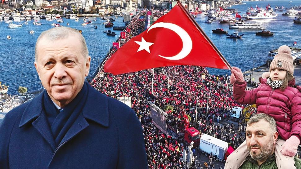 Başkan Erdoğan, Galata'ya giden yüz binlerin Filistin'i yalnız bırakmadığını belirterek “Netanyahu denilen bu firavunun yaptıkları yanına kâr kalmayacak. Çünkü 7'den 70'e çok mazlumun ahını aldı” ifadelerini kullandı.