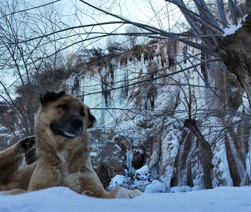 Girlevik Şelalesi buz tuttu, 2 metrelik buz sarkıtları oluştu. Bölgeyi gezmeye gelen vatandaşlar, ortaya çıkan eşsiz kış manzarasını hayranlıkla izledi.