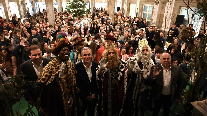 «¿Habéis sido buenos? ¿Queréis estar con los Reyes?». El vicepresidente de la Diputación de Pontevedra, Rafa Domínguez, se dirigió de este modo a los cientos de niños que acudieron ayer al pazo provincial a la visita de los Reyes Magos, su primera parada en la ciudad este 2026.