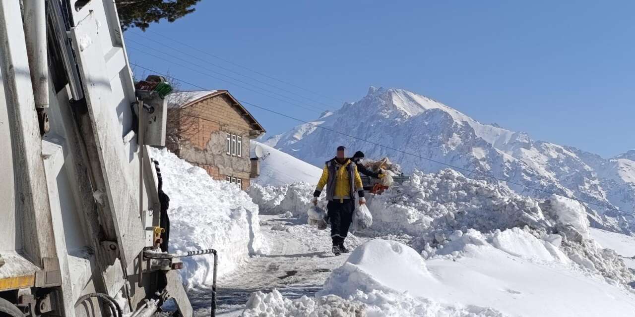 Hakkari Belediyesi Temizlik İşleri Müdürlüğü ekipleri, kentte kar kalınlığının 1,5 metreyi bulmasına rağmen görevlerini aksatmadan sürdürüyor.