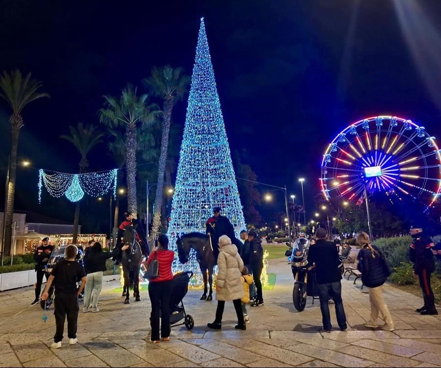 Olbia, sicurezza nel cuore della città: carabinieri a cavallo tra luminarie e famiglie