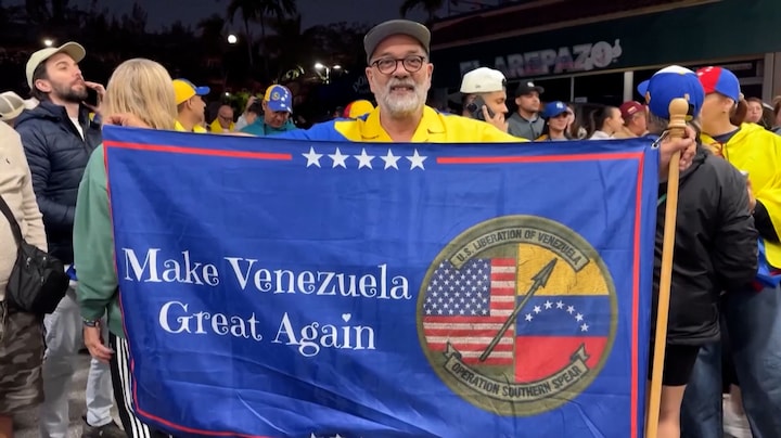 Venezolanen in Venezuela reageren woedend op de aanhouding van president Maduro. In het buitenland wordt juist feestgevierd.