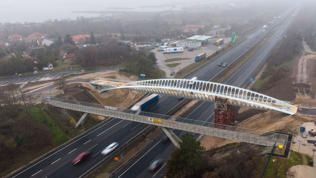 Új, karakteres gyalogos–kerékpáros híd épül az M7-es autópálya felett.