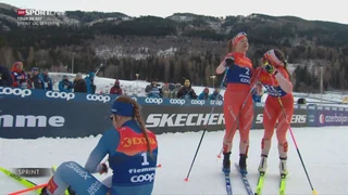Nadine Fähndrich läuft an der 5. Etappe der Tour de Ski im Klassisch-Sprint auf Rang 2.