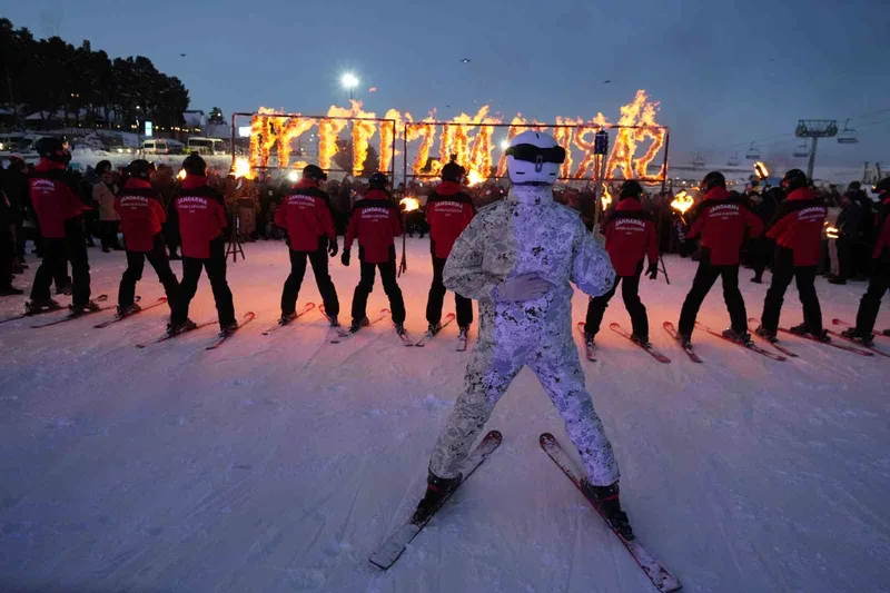 Sarıkamış şehitleri anısına meşaleli kayak gösterisi