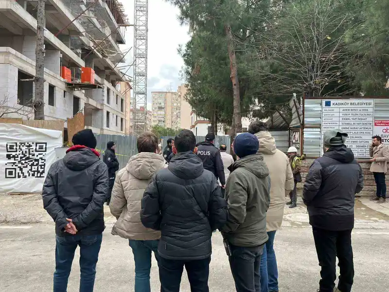 kadıköy’de maaşlarını alamadıklarını iddia eden inşaat işçileri vinç kulesine çıktı